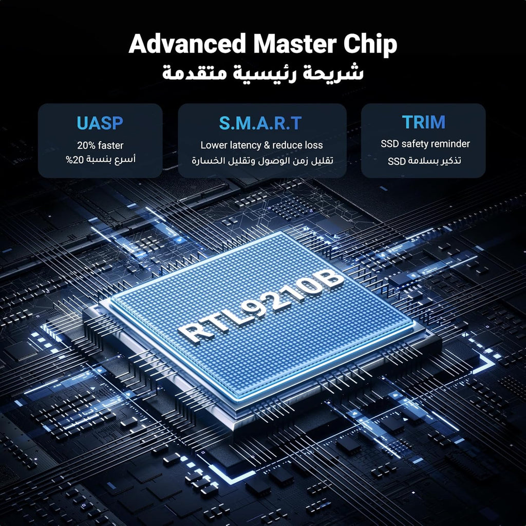 • 【Security & Stability】 USB C NVMe enclosure adopts advanced RTL9210B chip with short-circuit, over-current and multi-protection to ensure the safety of your SSD and valuable data, and supports UASP/ Trim with high transfer speed.