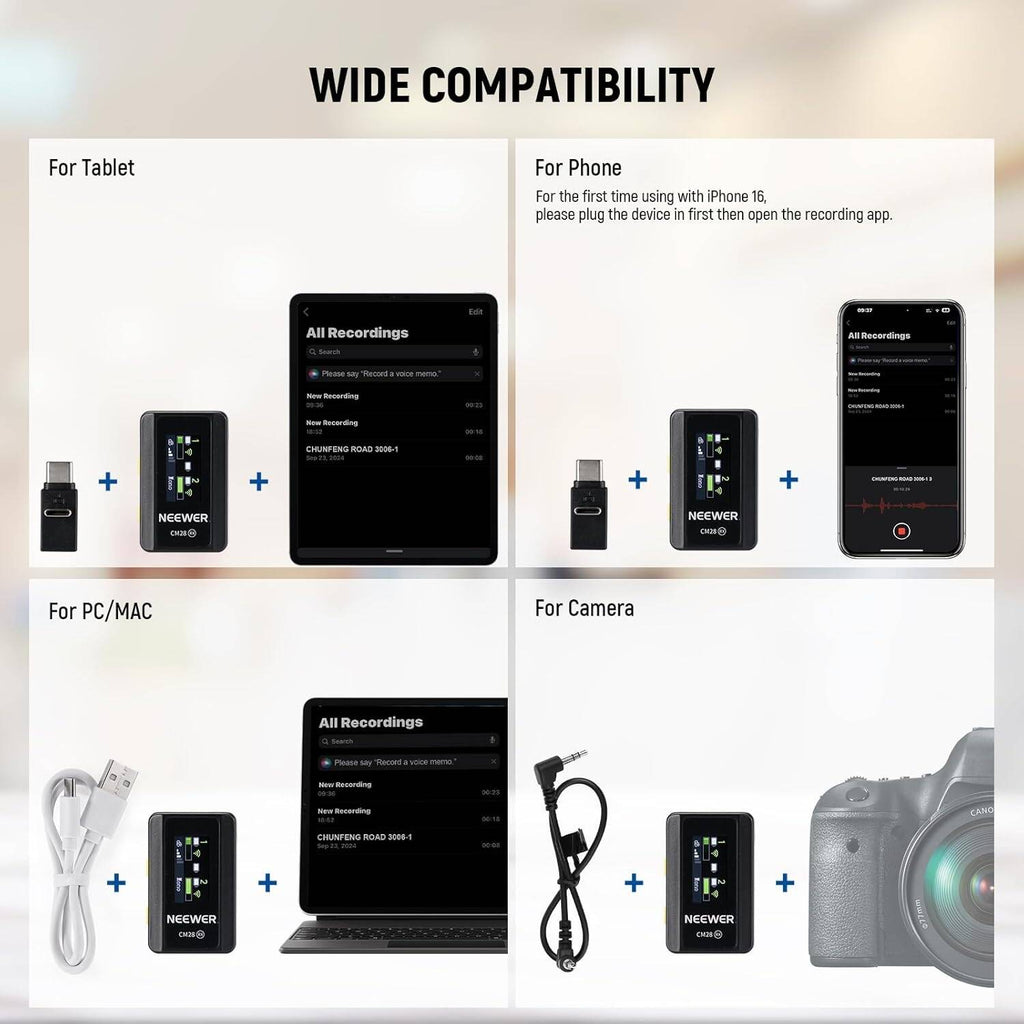 • Name : Neewer CM28 Wireless Lavalier Microphone System with Charging Case, 1 Click Noise Canceling, 4GB Storage for 9Hrs of 48KHz 16 Bit Uncompressed Audio Lapel Mic Compatible with iPhone/Android/PC/Camera