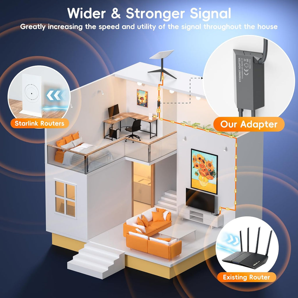 • 【Add an RJ45 Port to Your Starlink Satellite V2】This Starlink v2 Ethernet adapter can use the starlink cable to connect your router and dish to get an extra RJ45 port, you can use RJ45 cable to connect any network item to it to Increase network signal coverage. Perfect for connecting to a wired network when your device lacks a network port or the network port is faulty.