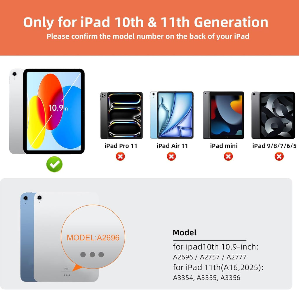 • Only Compatible with iPad 10th Generation: Magi type S109 keyboard case is a perfect choice for iPad (10th generation) companion 10.9 inches in 2022. Please confirm the model number of the back of the 10th generation - A2696, A2757, A2777