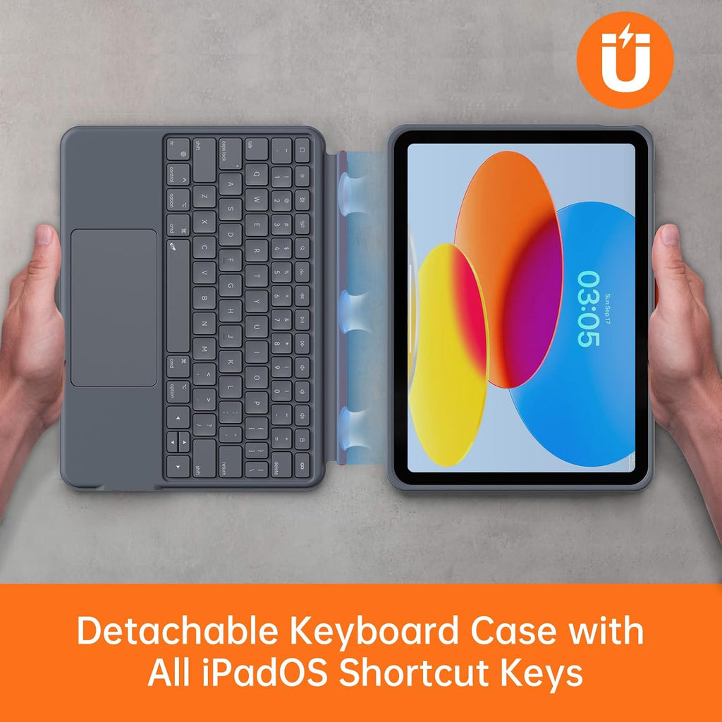 • Name : Case with Keyboard Compatible for iPad 10th Generation: Bluetooth Wireless Detachable Magnetic Stand Rechargeable Keyboard with Folio Slim Compact Removable Cover with Trackpad, White Backlit/Grey