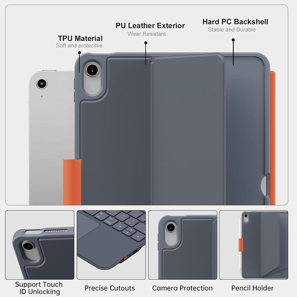 • Full Protection: Made of durable PU leather exterior, covered with translucent PC hard back shell, Magi type keyboard case for iPad 10th generation protects well