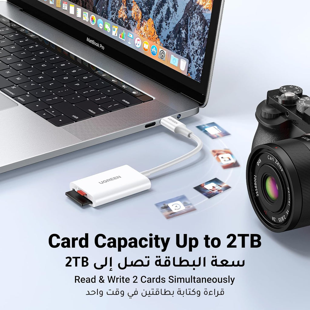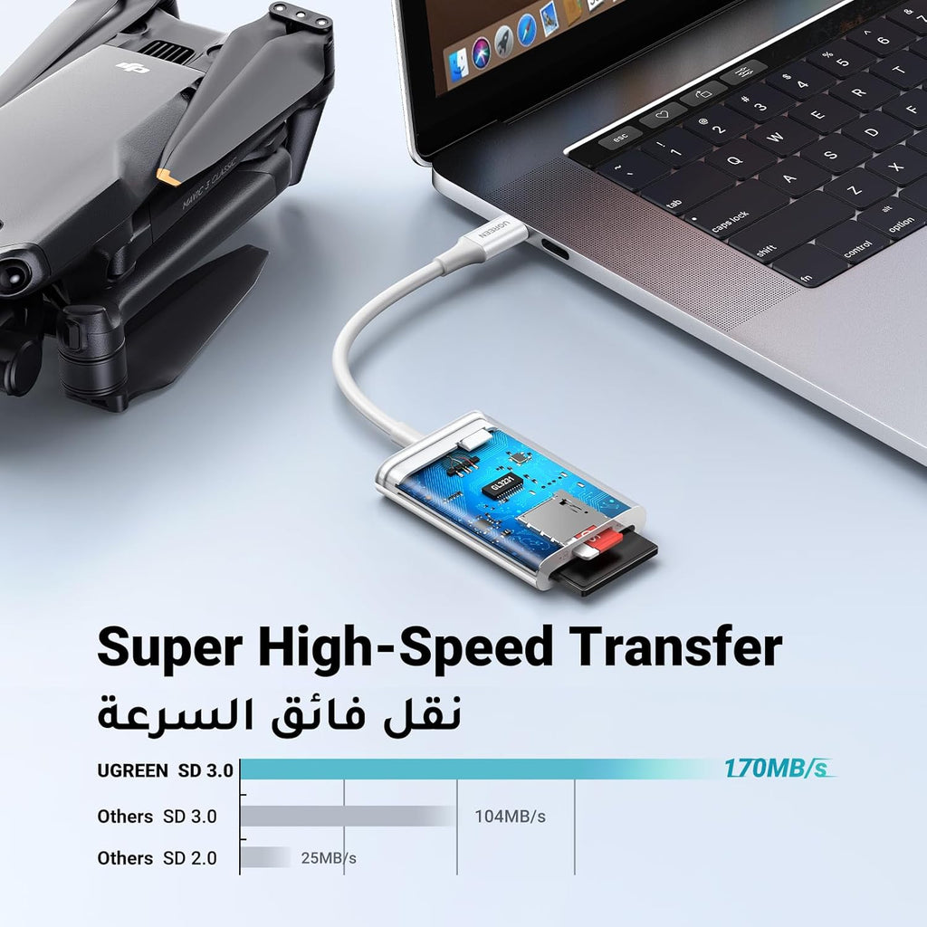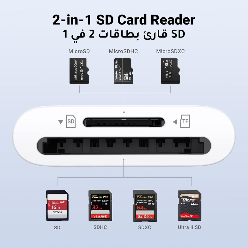UGREEN SD Card Reader for iPhone 16/iPhone 15, 2-in-1 USB C Memory Card Adapter, 10x Faster Transfer Speed to 170MB/s, Micro SD Reader for MacBook M1, M2, iPad, Samsung, Huawei, Dell, XPS, White