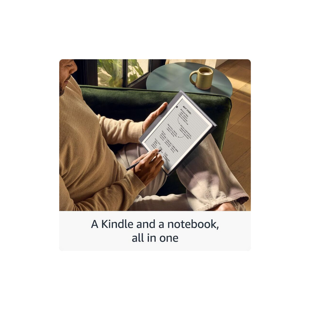 New Kindle Scribe – A Kindle and a notebook, all in one. Redesigned flush-front display with uniform white borders and upgraded Premium Pen, feels like writing on paper.