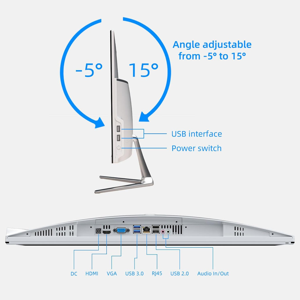 【Stunning All-in-One PC】: This all-in-one PC won't clutter your desk anymore. Enjoy crisp colours with this cool 23.8-inch Full HD PC. It comes with Celeron N5095 processor, 16GB RAM,512GB SSD, 2.9GHz with 2.4Ghz/5.0Ghz dual-band Wifi support,And it comes with a mouse and keyboard.
