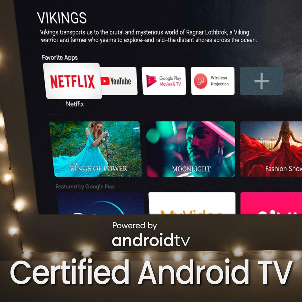 • Limitless Streaming Potential - Integrated certified Android TV supports Chromecast and AirPlay, with 16GB internal memory allowing downloads of over 5000 apps for endless entertainment.