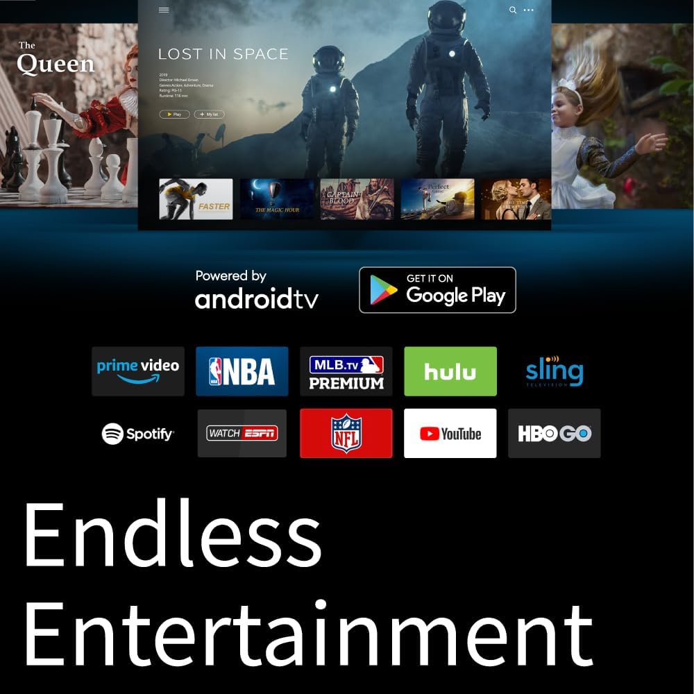 • ENDLESS ENTERTAINMENT: Google-certified Android TV and Google Play store, with 5,000+ of the latest Android apps, movies, shows, live sports, games, music, and more