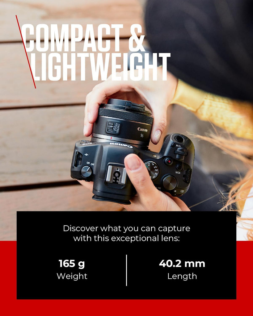 • ULTRA-WIDE VIEW TO CAPTURE ALL THE DETAIL - RF 16MM F2.8 STM’s full-frame focal length is ultra-wide, offering optimum vlogging potential and great creative opportunities for content creators shooting interiors and big views