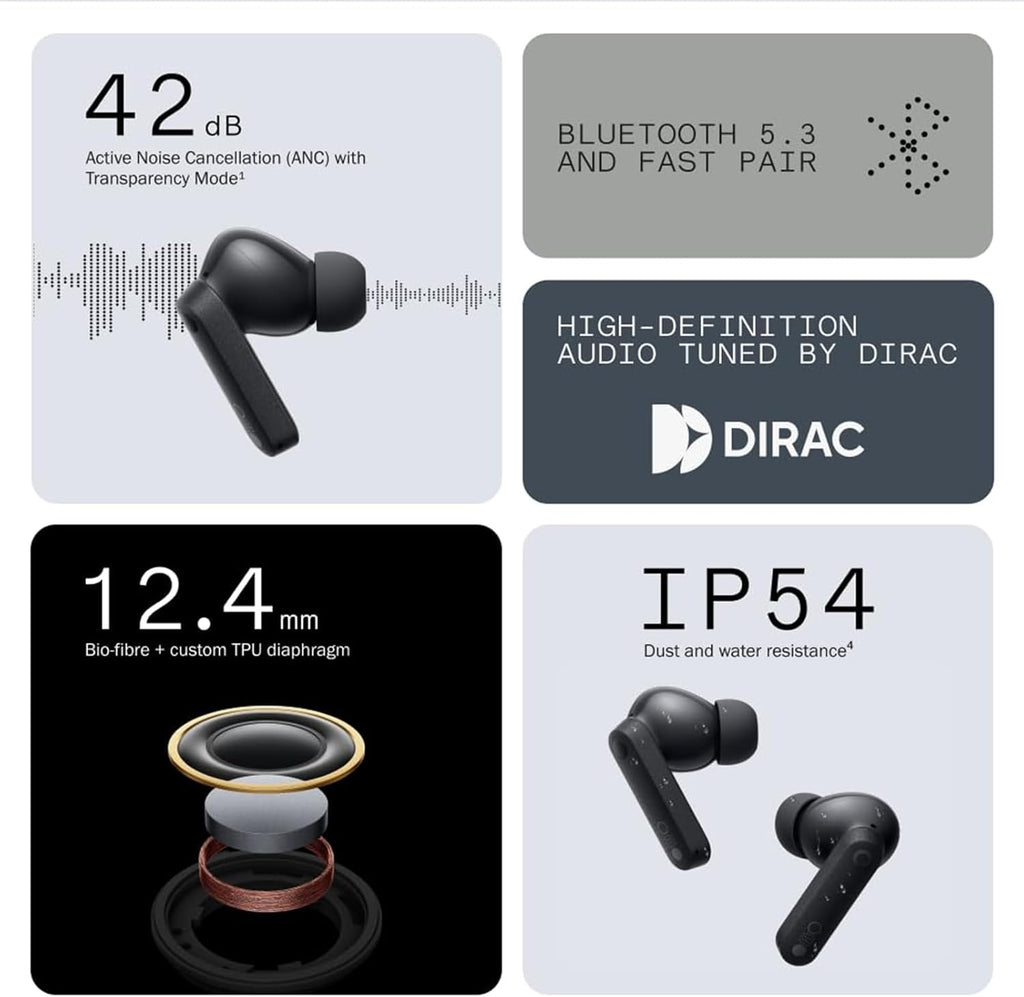 • Silence the distractions. With Hybrid ANC technology, CMF Buds utilises mics both inside and outside the earpiece to cancel out noise with a depth .