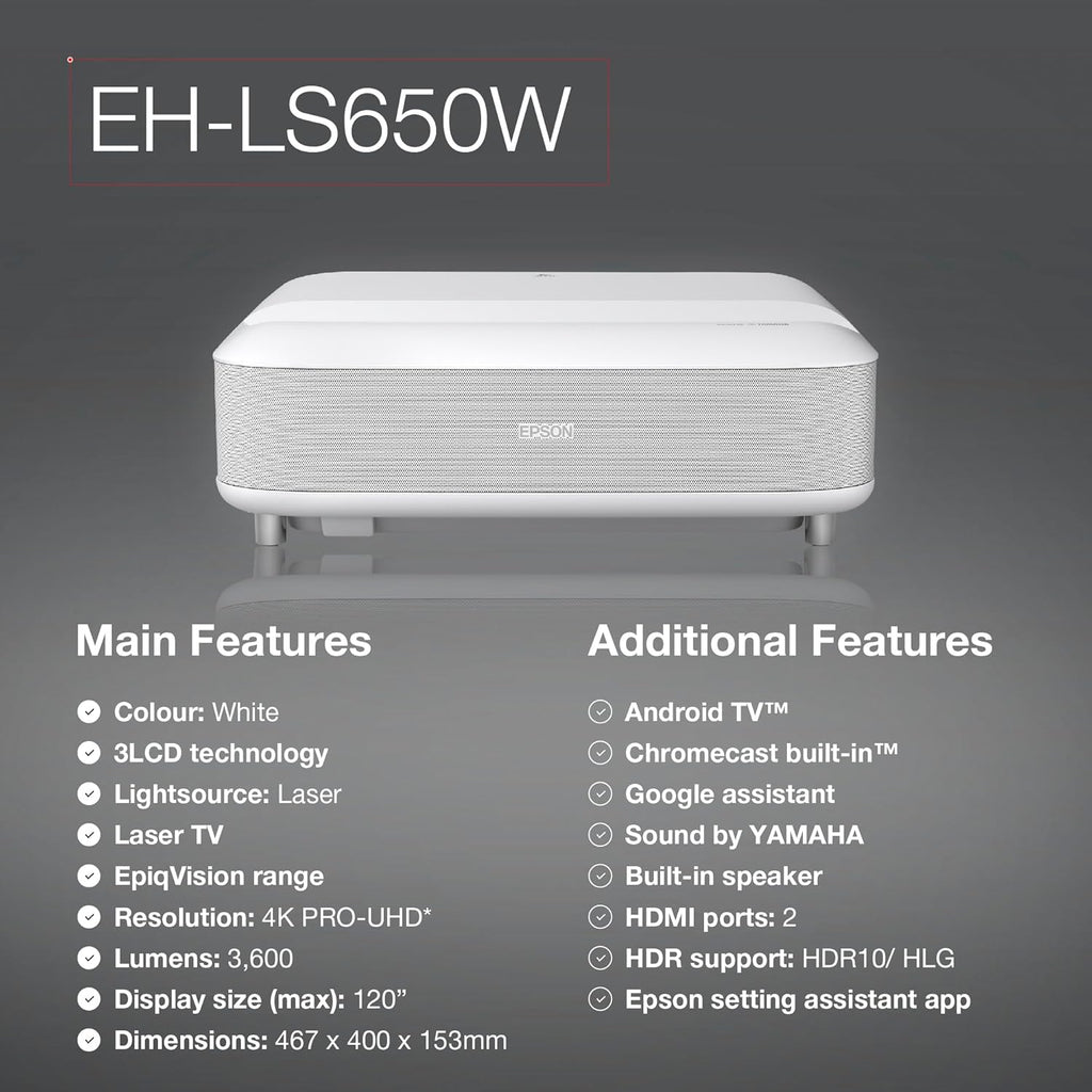 • Name : Epson EH-LS650W 4K PRO UHD Ultra Short Throw Projector