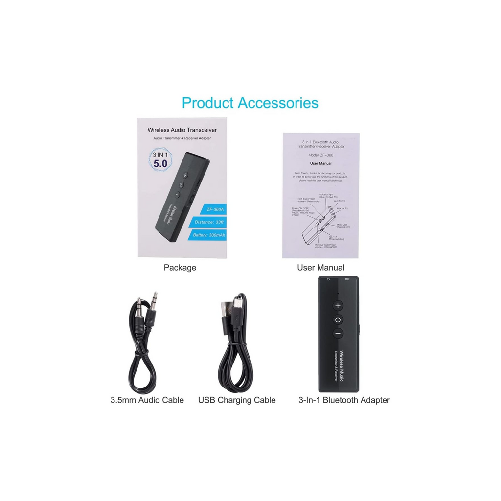 • Name : Exrp Bluetooth 5.0 Transmitter 3-in-1, Portable Wireless Bluetooth Adapter, Rechargeable Battery Powered Black Bluetooth Adapter for TV, Car Stereo System