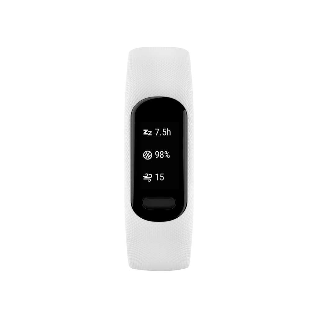 Discover the GARMIN Fitness Tracker Vivosmart 5 in sleek white—your ultimate companion for a healthier lifestyle. Yes, it tracks your steps, heart rate, and energy levels with precision, empowering you to stay on top of your fitness goals. Designed for simplicity, the intuitive interface makes monitoring your progress effortless. With a comfortable, slim design, it's perfect for all-day wear, whether you're at the gym or on the go. Plus, receive smart notifications right on your wrist! Elevate your fitness journey and embrace a healthier you with the Vivosmart 5—where tracking meets simplicity.