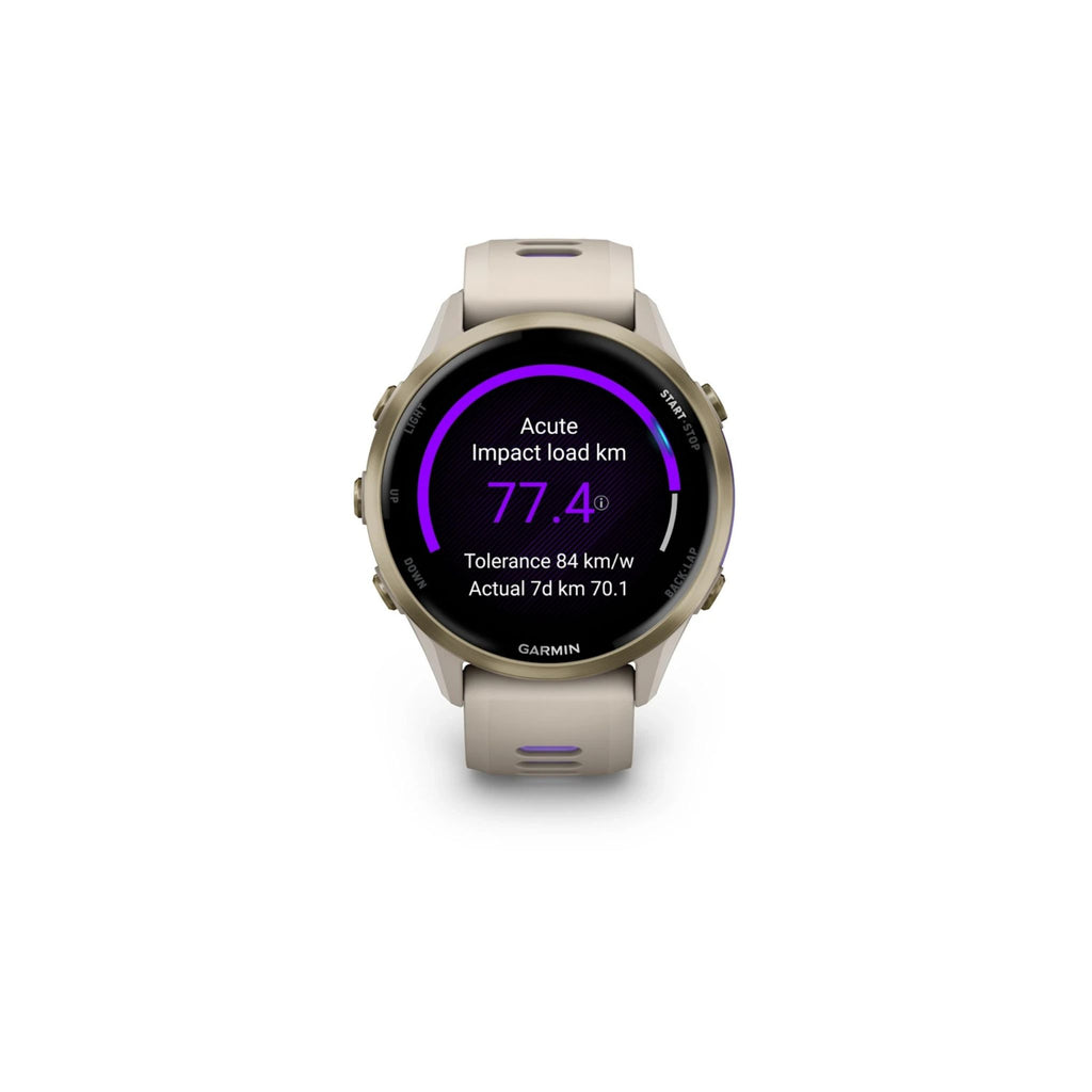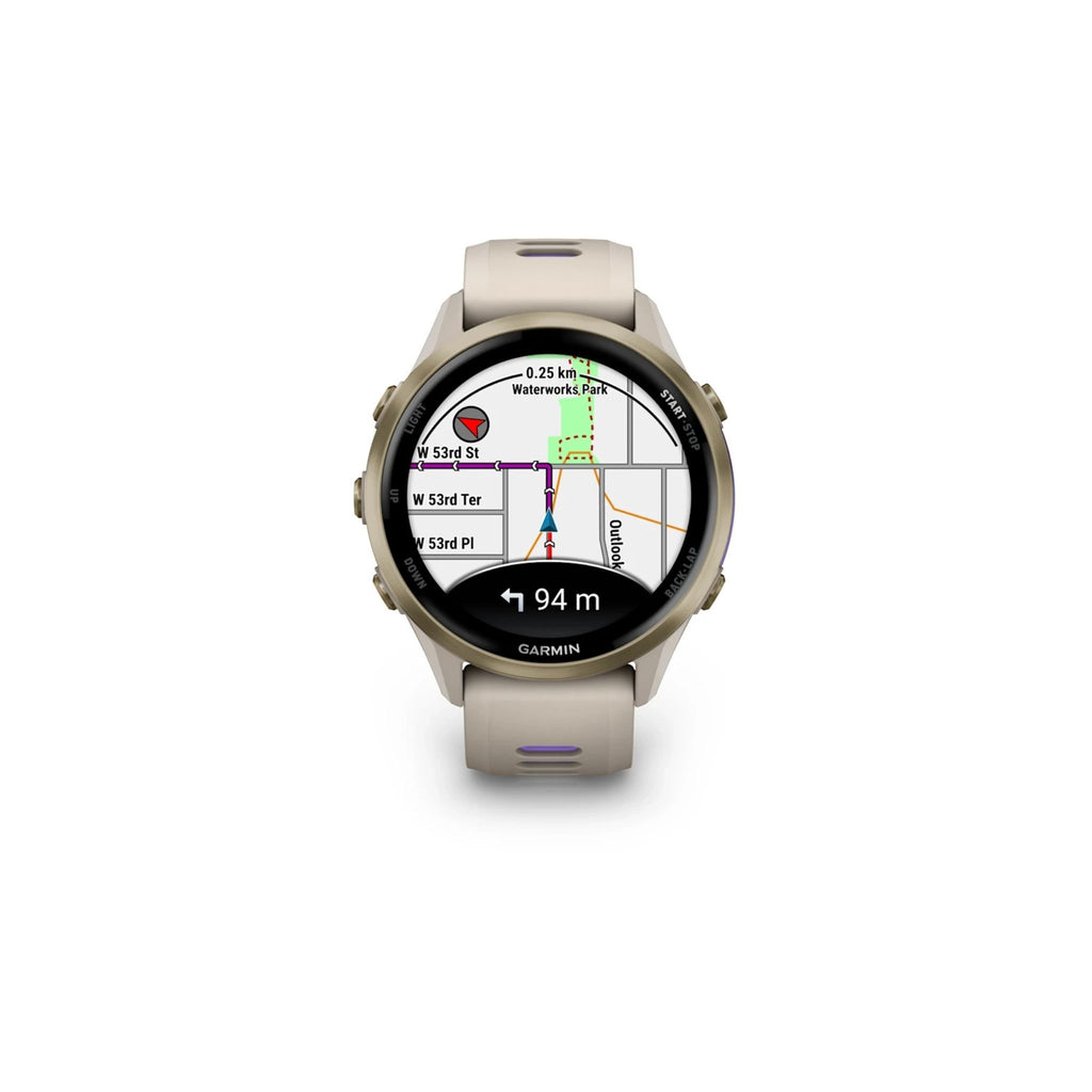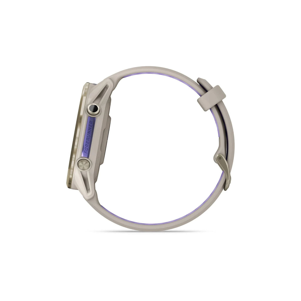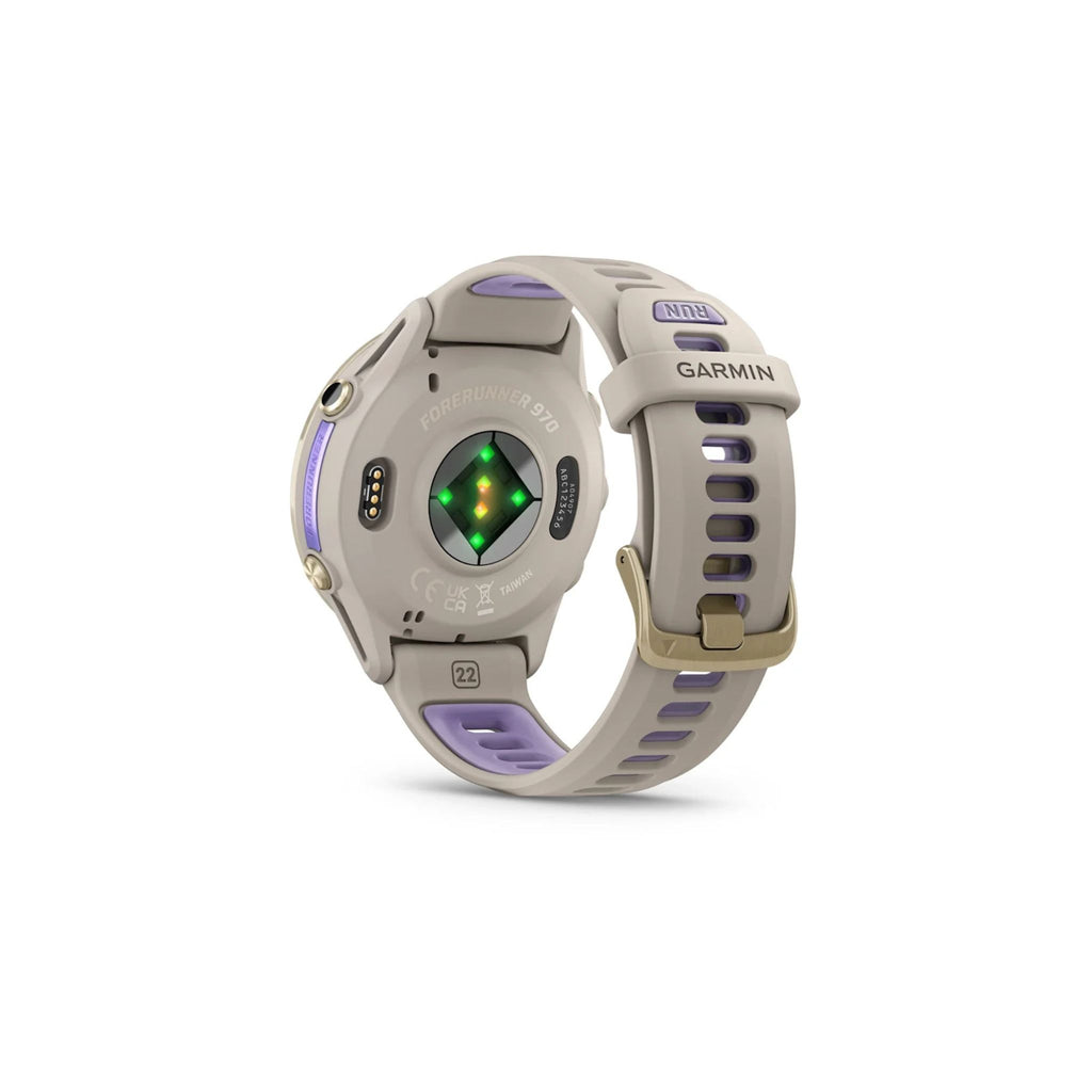 Make a subtle yet sophisticated statement while you conquer your training with the Garmin Forerunner® 970 (Soft Gold Titanium with French Gray Case and Translucent Indigo Band). This ultimate GPS running and triathlon smartwatch features a brilliant 1.4" AMOLED touchscreen display, scratch-resistant sapphire lens, and lightweight titanium bezel. It delivers cutting-edge training metrics, including new Running Tolerance and Running Economy, a built-in LED flashlight, multi-band GPS with SatIQ™, and advanced mapping. With speaker/microphone for calls, comprehensive health insights (including ECG), and Garmin Pay™, this elegant Forerunner 970 provides up to 15 days of battery life for serious athletes seeking both style and substance.