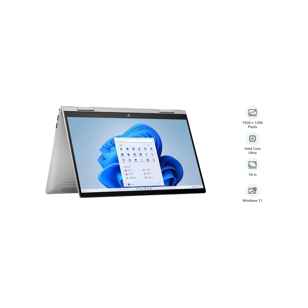 HP Envy x360 16-ac0023dx 2-in-1 laptop, Intel Core Ultra 7-155U, 16GB LPDDR5 ram, 1TB SSD, 16″ WUXGA IPS 100% sRGB, Windows 11, Glacier silver, Eng-Backlit keyboard