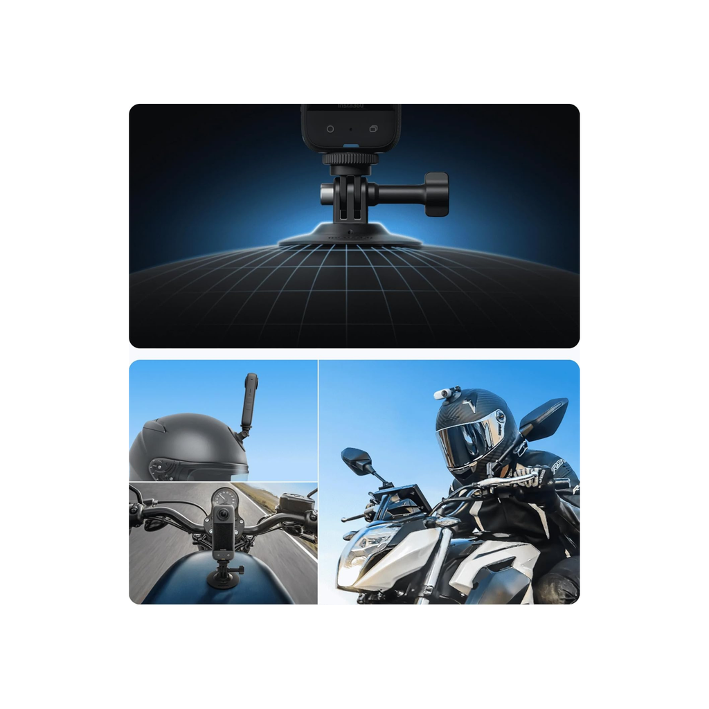 • COMPLETE MOUNTING KIT: The Insta360 Motorcycle Bundle is the complete solution for mounting your Insta360 ACE/ACE PRO, GO 3/2, ONE R/RS or X4/X3/X2/X camera to your motorcycle or your helmet. This kit includes several peel and stick 3M adhesive mounting stickers allowing you to mount your camera to any smooth, flat surface on your bike - such as a front or rear fender or even your gas tank.