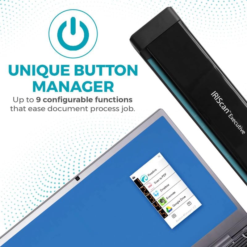 • This scanner is the ideal scanning tool for freelancers, small and large businesses or medical and legal practices. IRIScan Executive allows users to define a simple document processing process with Button Manager, a unique intuitive button manager