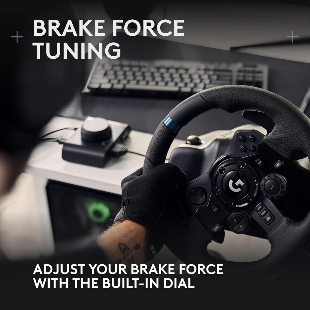 • Quick pressure-sensing brake adjustment - an easily accessible dial in front of the Logitech G Racing Adapter allows racers to quickly change the pressure-sensing brakes on Logitech G Racing Pedals for your preferred racing style