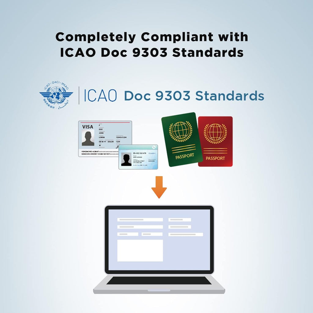 • Completely compliant with ICAO Doc 9303 standards, Supporting TD1/TD2/TD3/TDV document size scanning.