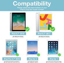 • Wireless Keyboard Case for Apple iPad 9.7 Inch 2018 / 2017 A1893 A1954 A1822 A1823, also fit iPad Pro 9.7, iPad Air (A1474 A1475 A1476) and iPad Air 2...