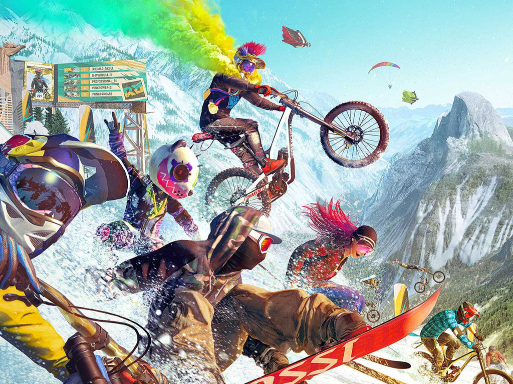 Jump into the Riders Republic massive multiplayer playground! Ski, snowboard, bike, or wingsuit across an open world sports paradise. Race in mass start events, develop your rider’s career, or kick back with friends and free roam the parks.
