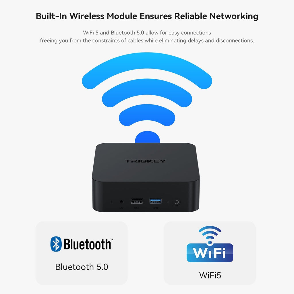 ⚡【Dual 4K 3840*2160 HDMI Screen Output】The mini momputer supports ultra 4K 3840*2160px HDMI Output, true to life display quality brings you a stunning visual experience. The Mini PC also comes with Dual 4K HDMI, which allows two displays to be connected, offering a better graphic effect, and improving the work efficiency.The mini pc uses WiFi-5, 1000M LAN, and Bluetooth 5.0 connections. The fast network provides you with a smooth usage environment.