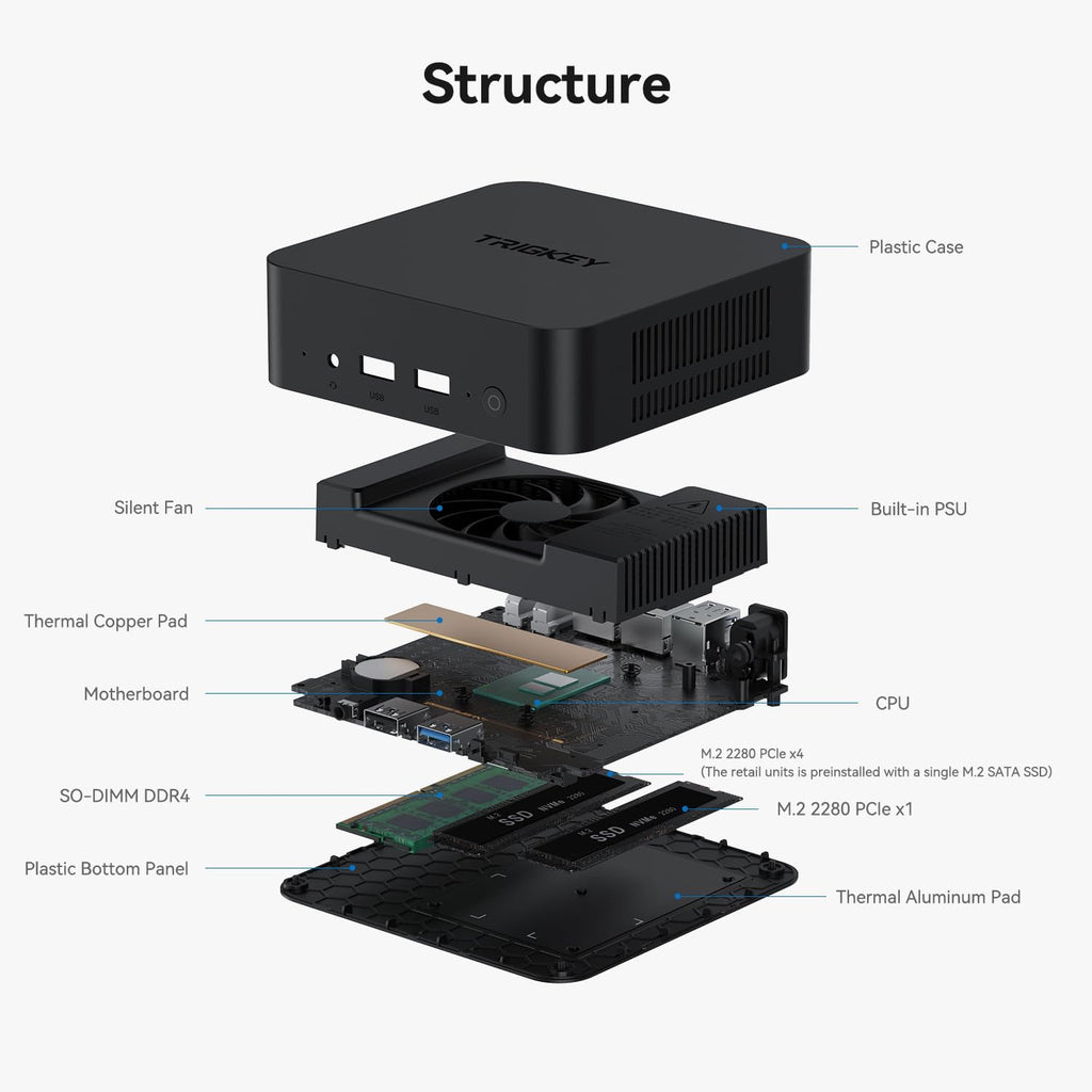 ⚡【Intel Alder Lake N95 Processor】 TRIGKEY KEY-N series configured N95 processor, 4C/4T, up to 3.4GHz; using intel7 lithography technology, up to 6MB cache, built-in power supply - 45W, which improves overall performance. Also, it provides an excellent user experience and is very suitable for efficient work, light office, 4K video playback, online education, etc.