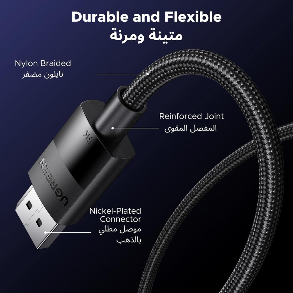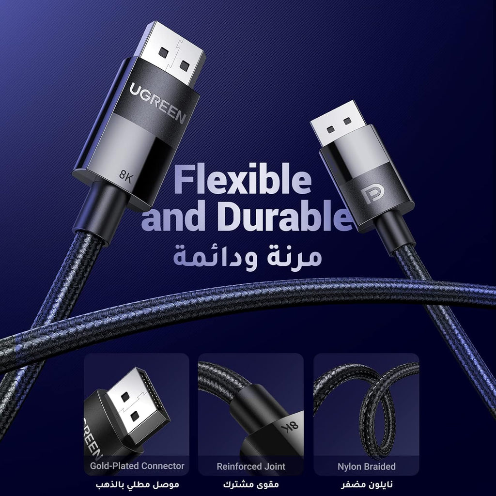 • Name : UGREEN 8K DisplayPort Cable 1.4, DP to DP 3M, 8K@60Hz/4K@165Hz/2K@240Hz/1080P@240Hz, for Gaming Monitor/Graphics Card/PC, Support 3D/HDCP/HDR/G-SYNC/Free-SYNC, Male to Male Nylon Braided Cable-3Meter