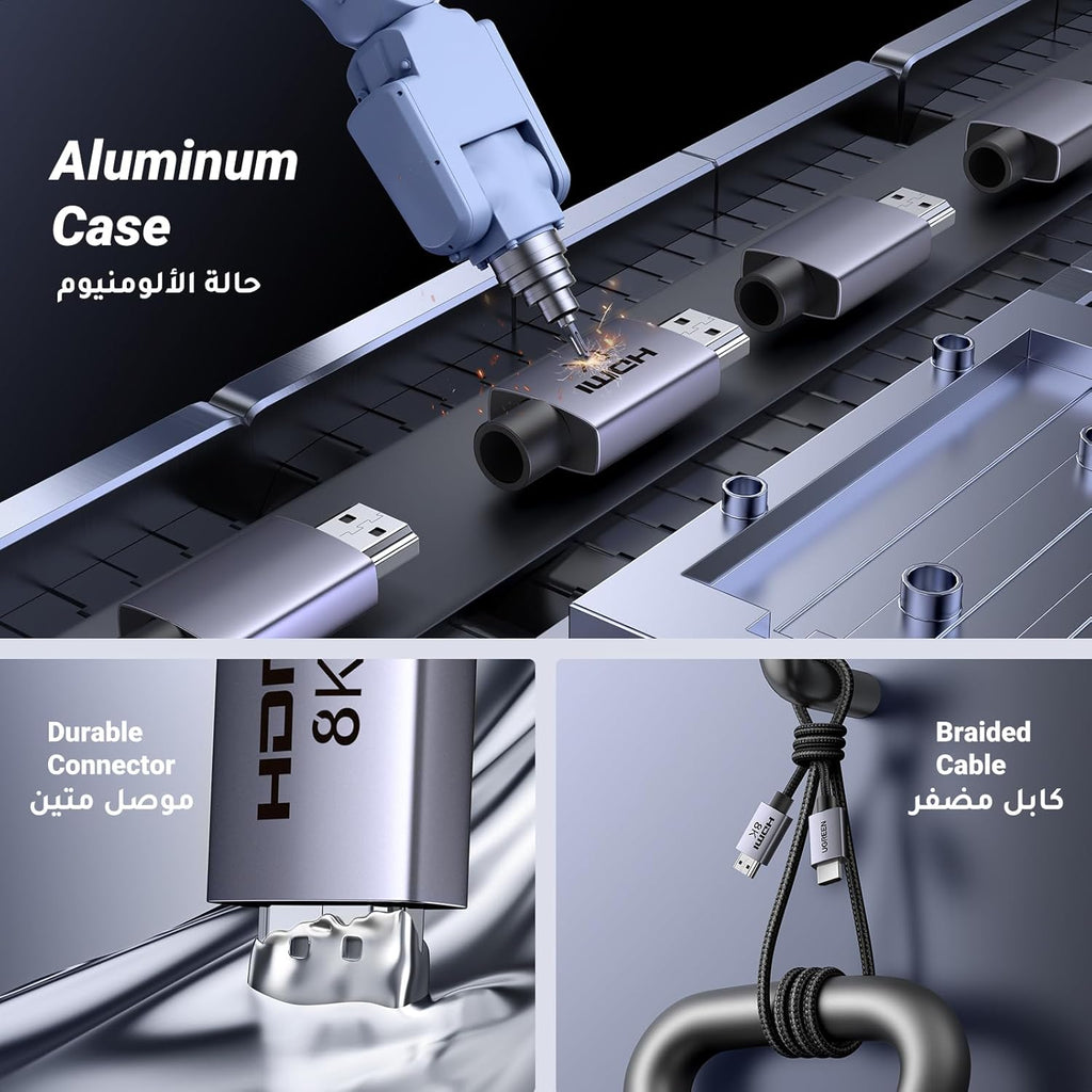 【Best material, Highest quality】This 8K 60HZ cable is made of the best mold and offers longer lifespan: [Aluminum alloy shell] Harder and more durable than other cables, and the aluminum alloy shell is lighter and can effectively prevent oxidation and corrosion. [Nickel plated connector] Stronger conductivity, nickel-plated plugs prevent plugs from rusting or aging. [Nylon Braided Cord] Softer and more flexible, braided cord is easier to bend and not easy to be damaged.