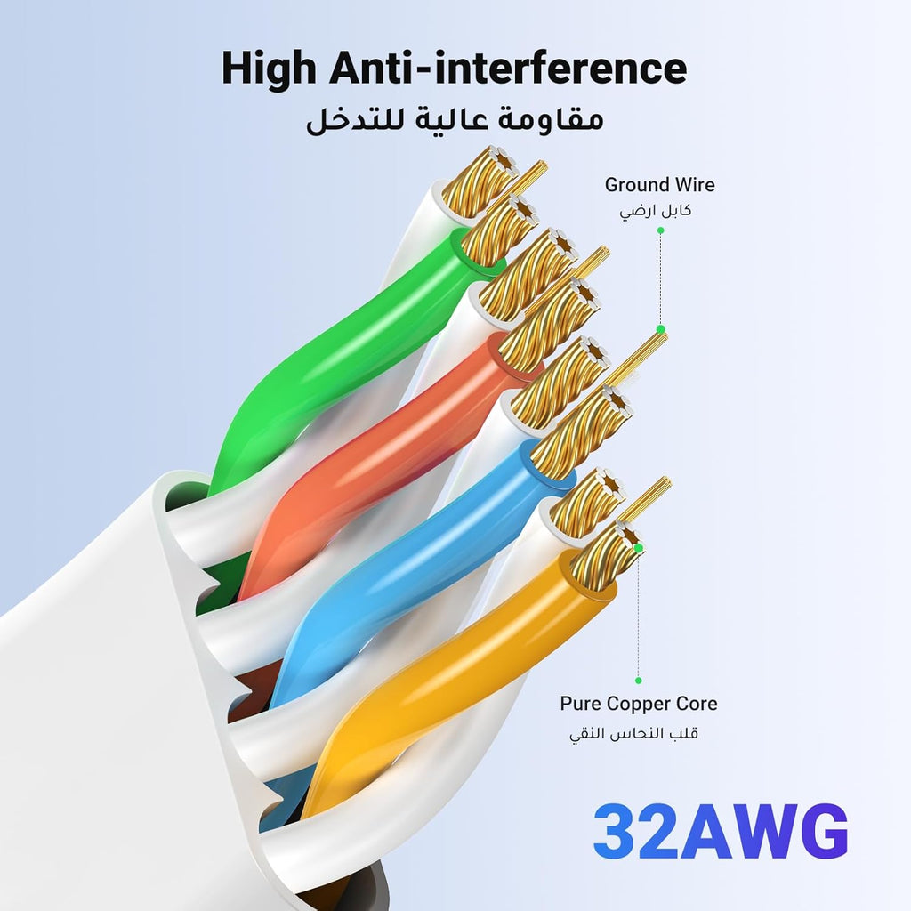 • 【Double Shielded Network Cable】UGREEN RJ45 Ethernet Cable is made of 4 shielded twisted pair(U/UTP) copper wires with 1 RJ45 connector on each end. The extra shielding layer and the improved wire twist quality can better protect the internet cable, from the interference of cross-line interference, keeping the signal stable and the network is not easy to be interrupted.