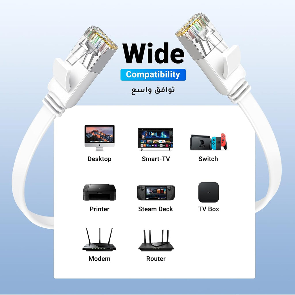 • 【Universal Compatibility】This high-speed Cat6 Ethernet cable works well with all RJ45 connector devices such as PC, Laptop, iMac Pro, PS5, PS4, PS4 Pro, PS3, Switch, Ethernet Adapter, Hub, Router, Modem, Monitor, Projector, WiFi extender, Smart TV, Xbox, Video game consoles, Patch Panel, Network printers, Media players, VoIP Phones, Blu-ray Player, etc.