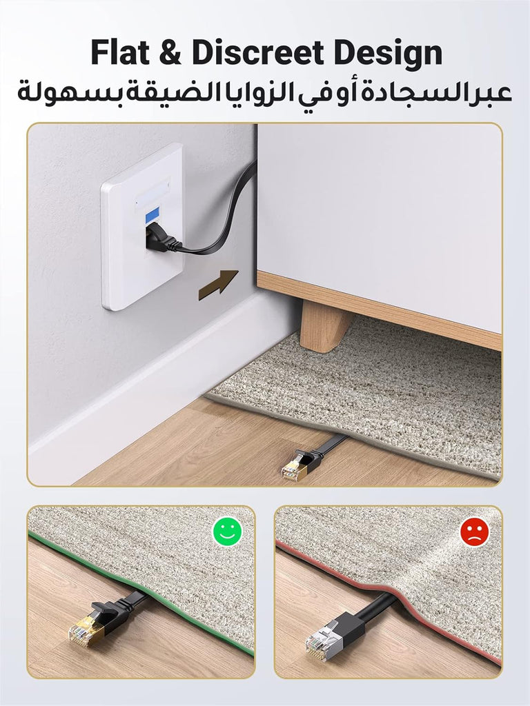 • 【Flexible Flat Design】: UGREEN Cat 7 High-Speed Internet Cable feature a unique flat and slim design that makes the patch cable stronger and more durable. The cat7 flat ethernet cable is flexible to use, whether it is installed under the door, through the window, or hidden under the carpet, it can be done very easily.