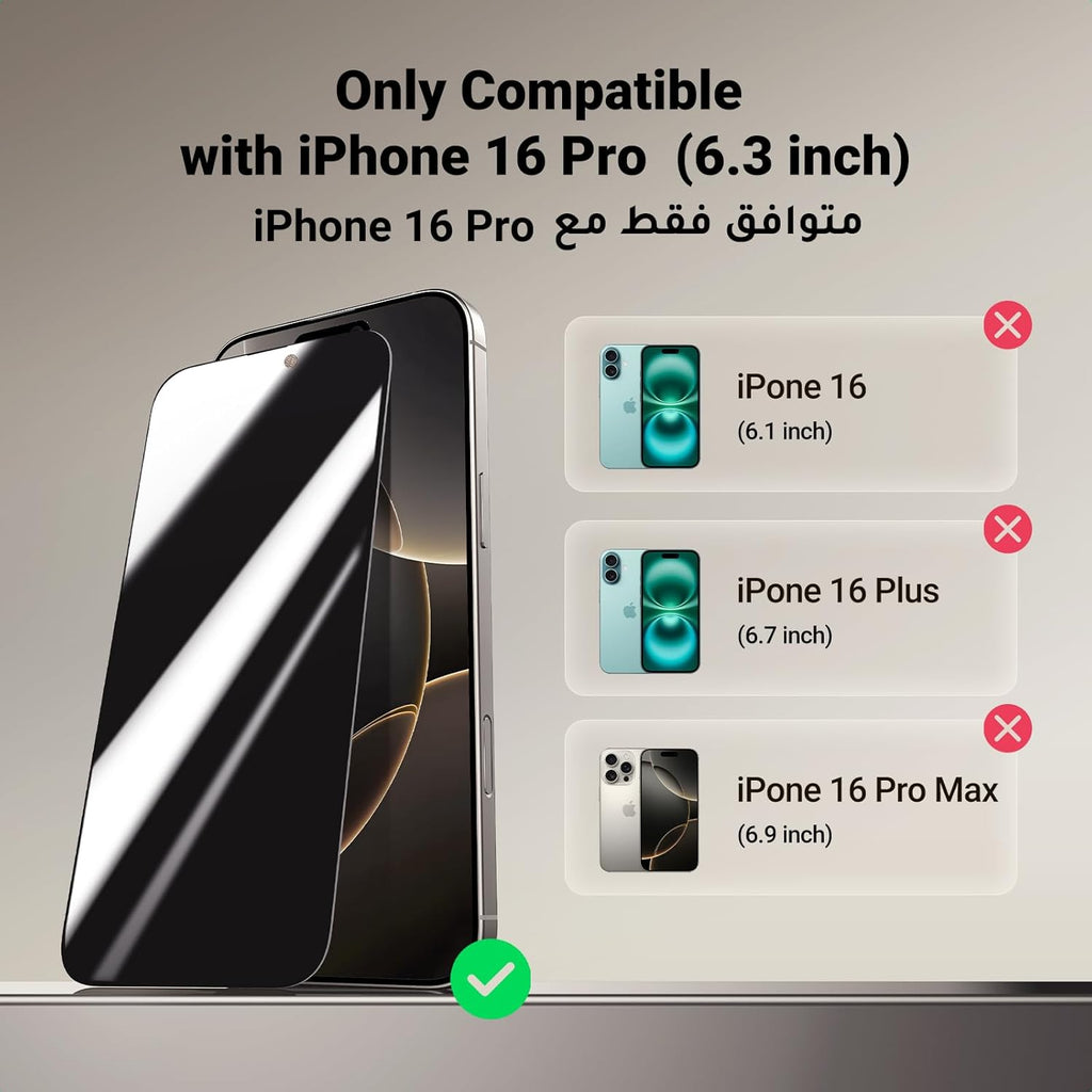 • Name : UGREEN iPhone 16 Pro Screen Protector Privacy 6.3'' 100% Privacy Protection Ultimate Drop Protection 1:1 Full Coverage Anti Spy Screen Protector 9H Tempered Glass Fit for Most Case 2 Pack
