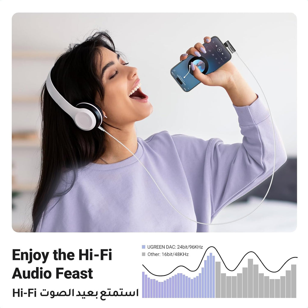 • 【USB C Audio Mic Adapter】UGREEN DAC USB C to 3.5mm Jack Adapter adds a headphone jack to Type C or Thunderbolt 3 phones/tablets/laptops and enables them to play music on high-end audio output devices like car stereo system, Hi-Fi speaker, soundbar. The 3.5mm to USB C adapter also supports microphone & in-line remote control like Volume+/-, Next/Previous Song, making it convenient to make video calls and control the music playlist