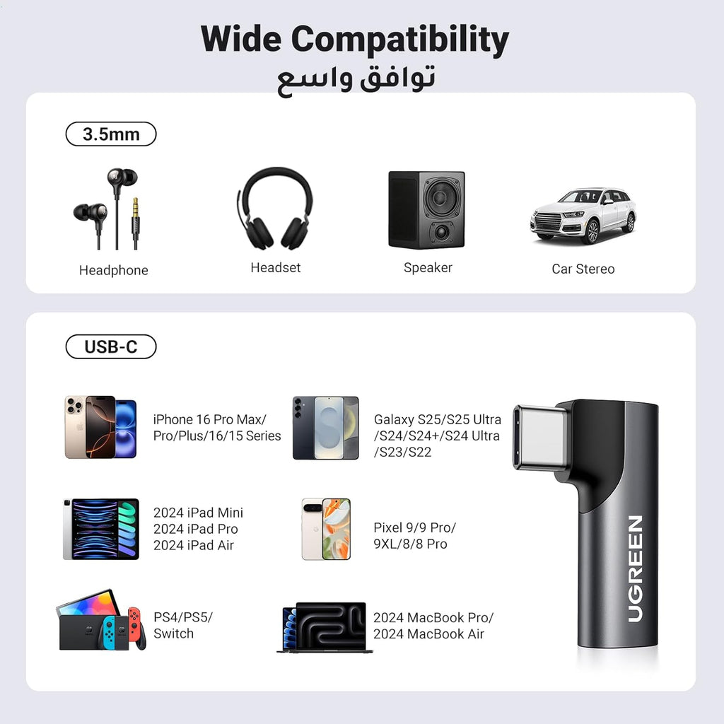 • Name : UGREEN USB C to 3.5mm Audio Headphone Jack Adapter Type C Aux DAC Earphone Stereo Mic HiFi Right Angle Compatible with iPhone 16 Series, iPad Mini/Pro/Air, Samsung S24 Ultra S24/S23, Pixel 5 XL, Black