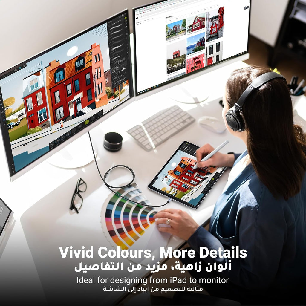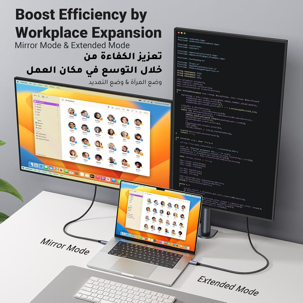 【Universal Compatibility】: UGREEN USB C to HDMI 4K cable is compatible with many types of equipment. The USB C port can be connected to a mobile phone or computer that supports video transmission, such as iPhone 16/15 Series,MacBook Pro M2/2022,MacBook Air M2/2022,iPad Pro 2021, iPad mini 6,Galaxy S22/S22+/ Note20/Note10+,Lenovo Yoga 930/ 920/ThinkPad A485/E485,Huawei P50/P40/Mate 20/ Mate 20 Pro,Surface Pro 8,HP Envy 13,ChromeBook Pixels.